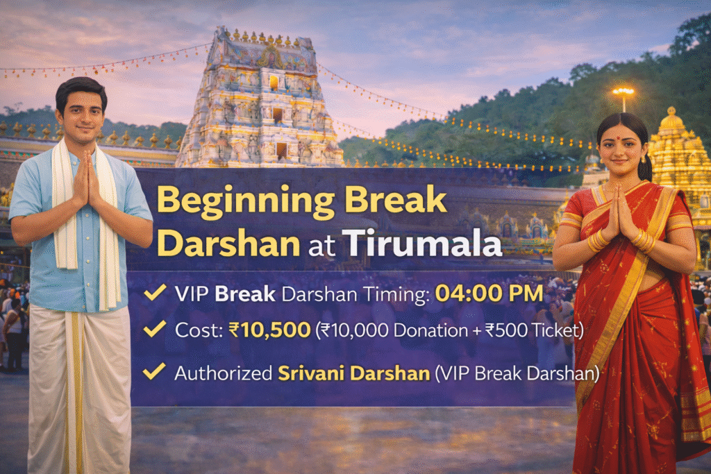 Beginning Break Darshan at Tirumala is one of the best darshan options for devotees who want a smooth and divine experience. With a clear cost of ₹10,500, same timing for all bookings, and official support from TTD, this darshan is safe, trusted, and spiritually fulfilling.