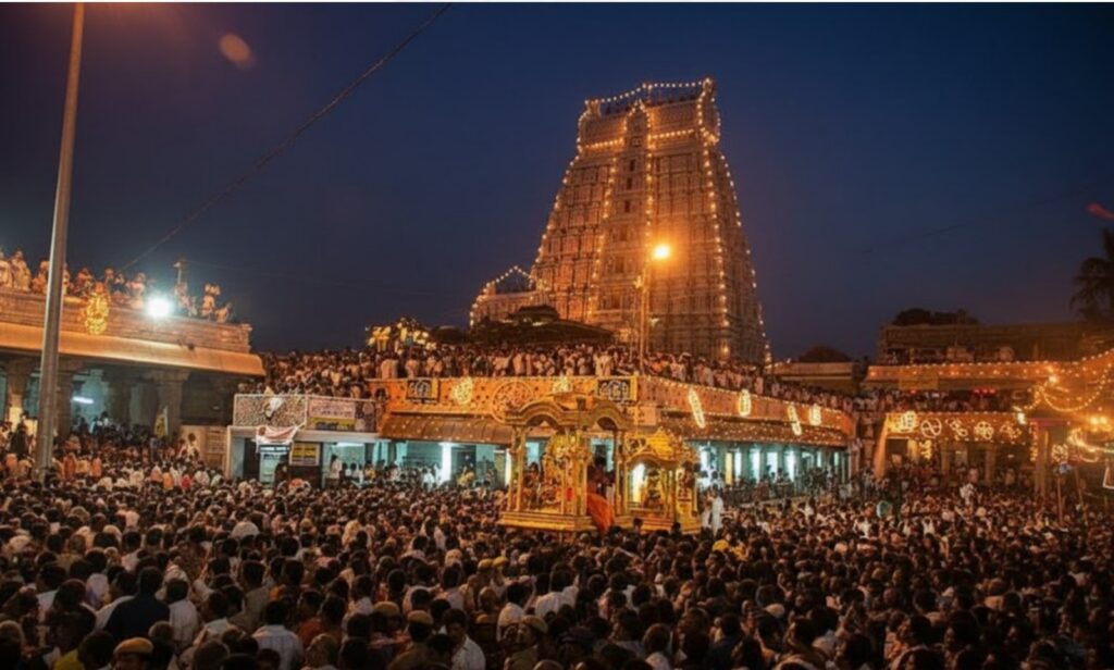 - Sri Venkateswara Swamy Temple, Tirumala Hills – The main highlight of the pilgrimage, where devotees climb or drive through the ghat roads to receive the powerful darshan of Lord Balaji.